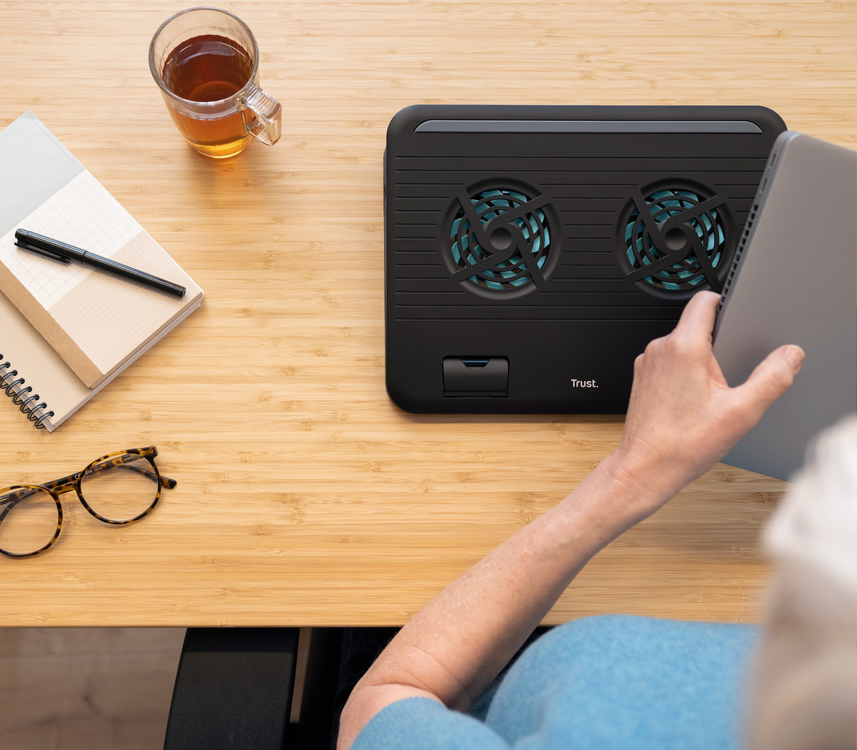 Big laptop? No problem. With enough room for all laptops up to 16 inches, this cooling stand provides reliable and stable support for your device, no matter the size. Just like a good colleague, this cooling stand has both you and your laptop’s back!
