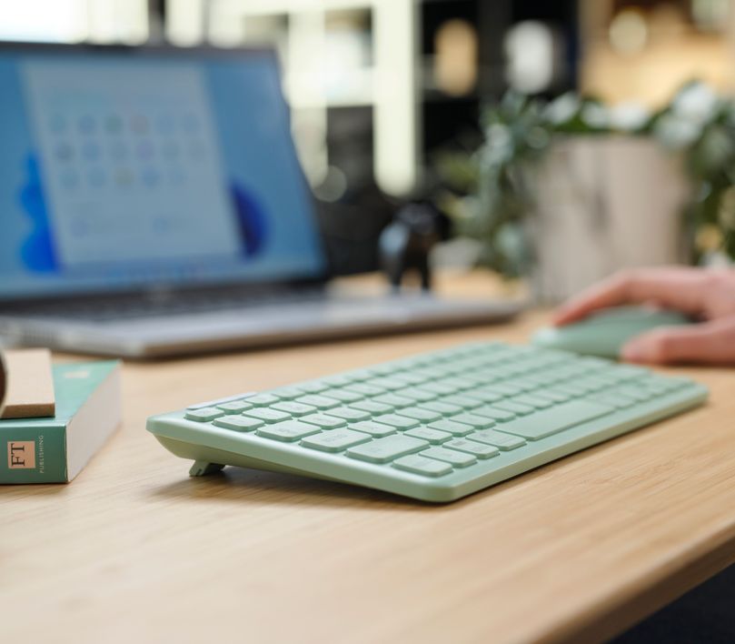 Take one step closer to sustainable working with the Lyra. Made with 51% recycled plastics and packaged in 100% plastic-free packaging, your keyboard and mouse may be different in colour, but they’re certainly green too.